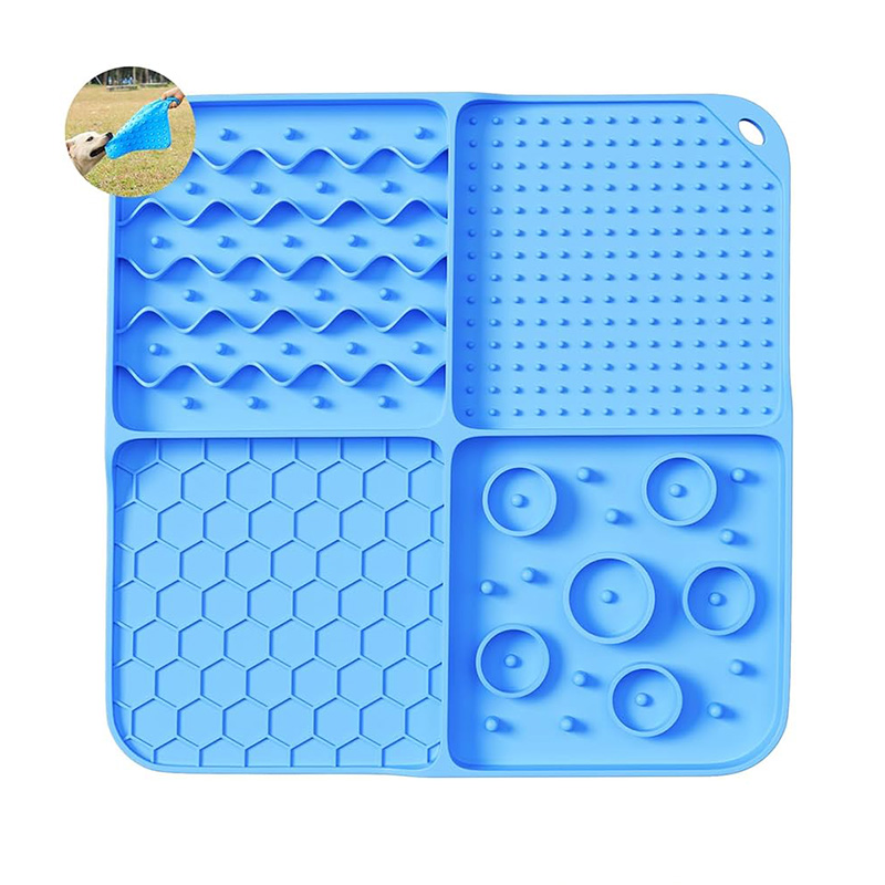 "Das Blau, angepasstSilikon -Leckmatten für Hundewar ein stetiger Verkäufer in der Haustierkategorie von Amazon. Das Saugnapf -Becher -Design beseitigt das Problem, dass Haustiere Lebensmittel verschütten, und die positive Überprüfungsrate beträgt über 95%! "